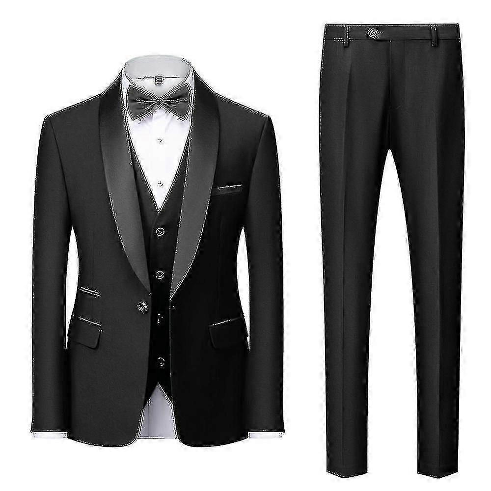 Men"s 3-piece Suit Jacket + Waistcoat + Trousers Wedding Business Suit Shawl Lapel Tuxedo