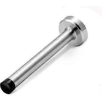 , 6 Inch Long Door Stopper, Wall Mount, Heavy Duty Solid Black Doorstop Brushed Stainless Steel With Soft Rubber Bumper Tips