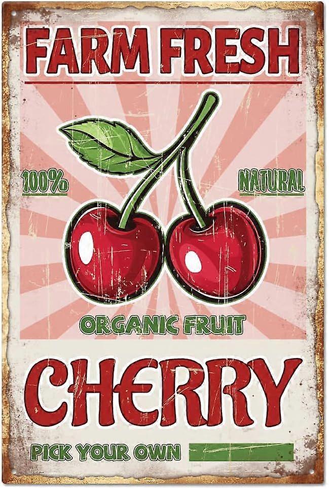 "Farm Fresh Cherry" Vintage Cherry Metal Tin Sign 12x8in/30x20cm Art Plaque Poster Wall Decor for Store Supermarket Bar Club Restaurant Cafe Vegetable