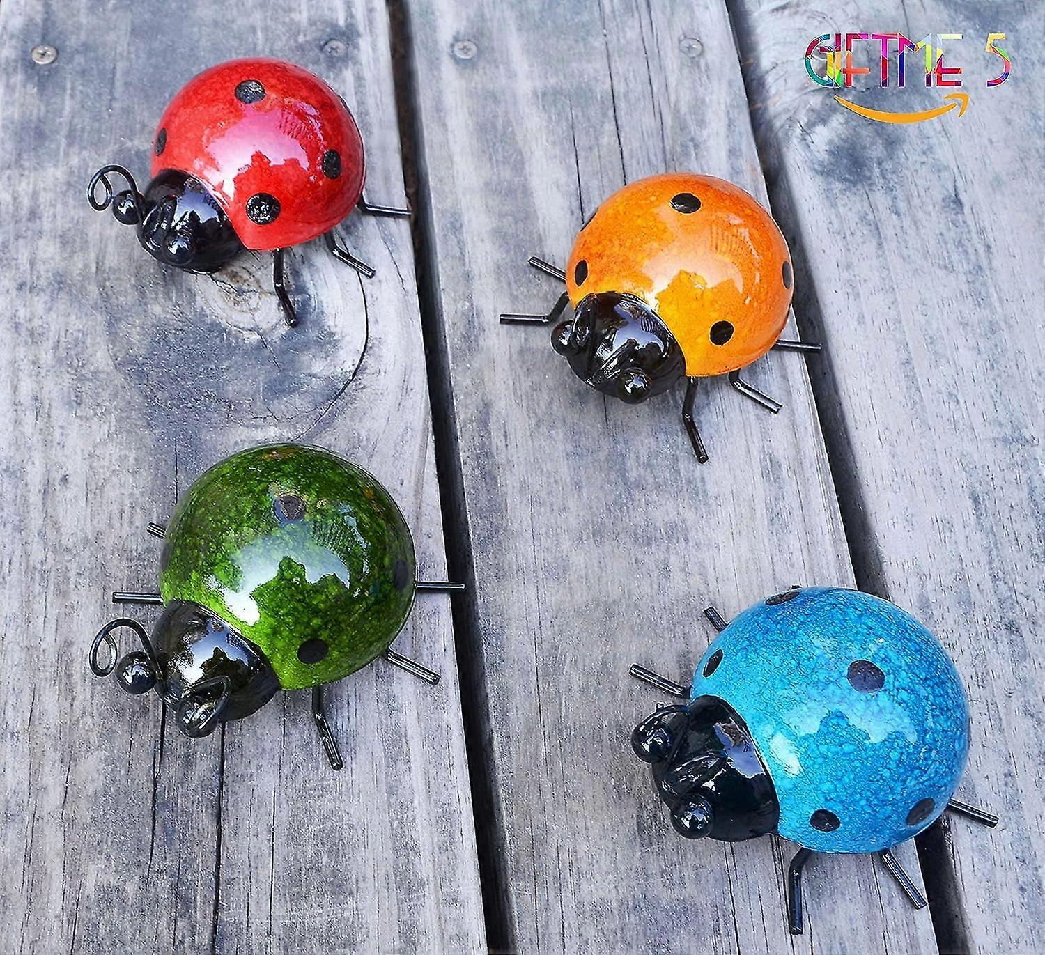 "Metal Garden Wall Art Decorative Set - Cute Ladybugs Outdoor Wall Sculptures (Pack of 4)"