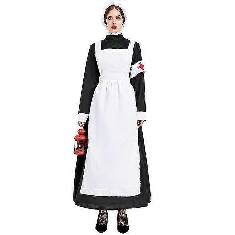 "Women's Florence Nightingale Costume Adult Nurse Dress with Apron, Bonnet, and Arm Band Halloween Historical Nurse Costume"