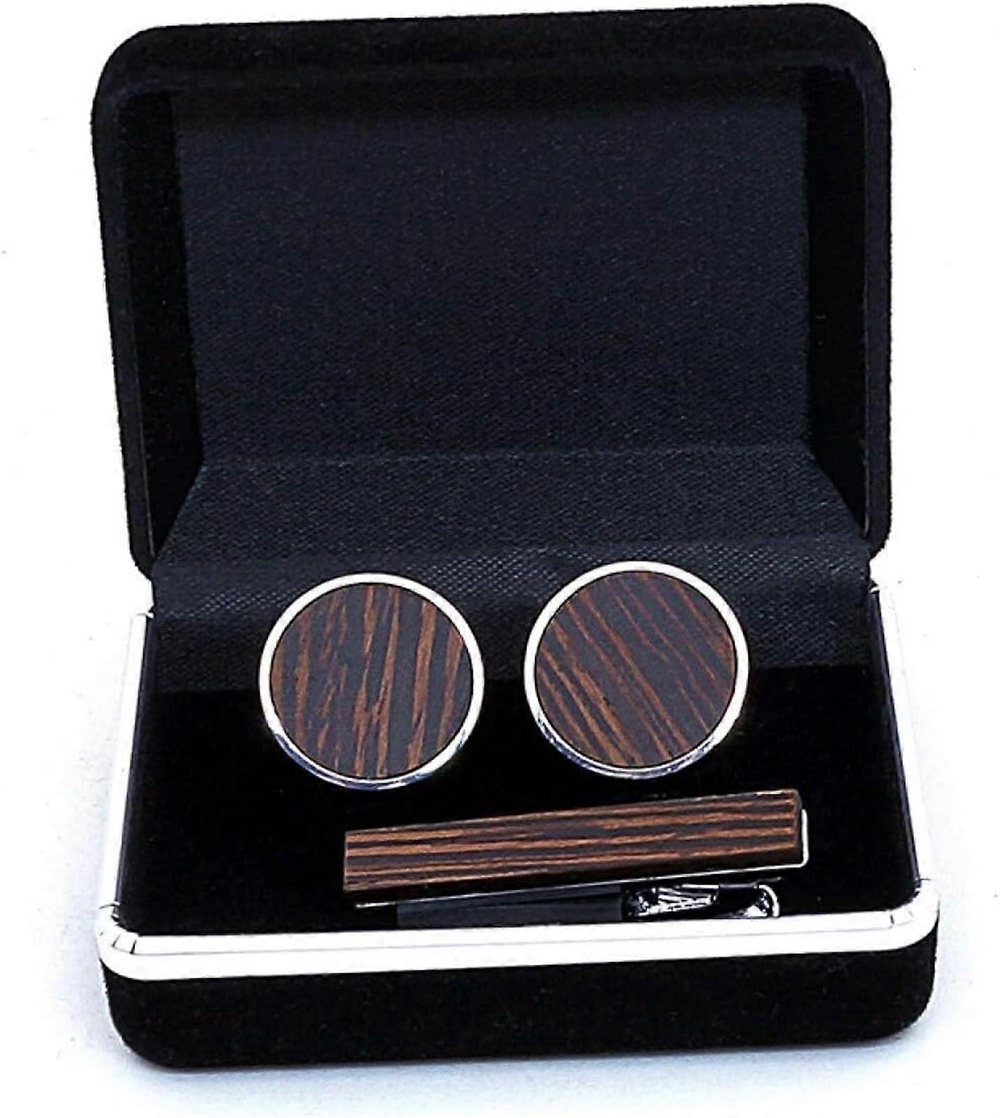 "Silver Metal Tie Clip for Men, Wooden Cufflinks, Stainless Steel with Custom Hand Engraving"