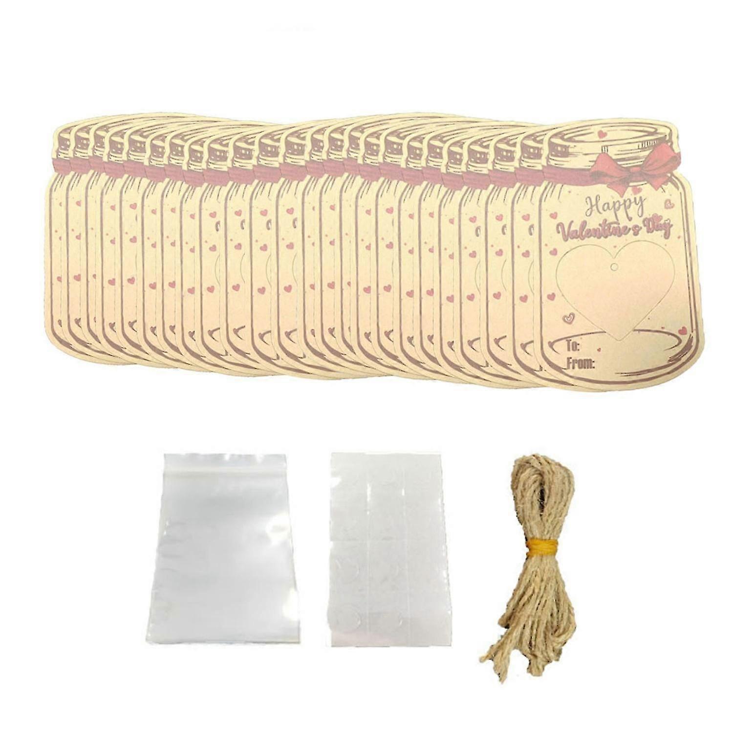 "24Pcs Valentine's Day Candy Bag Drift Bottle Shape Hollow Love Heart to And from Greeting Card Snack"