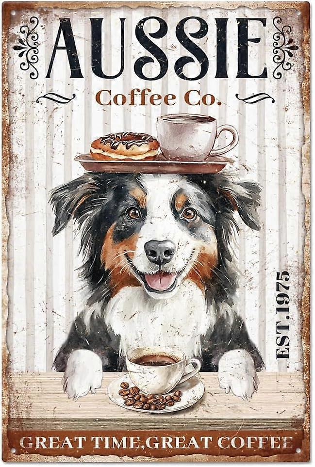 "Aussie Coffee Co. Est.1975 Great Time Great Coffee" Vintage Collie Dog Coffee Metal Tin Sign 12x8in/30x20cm Art Plaque Poster Wall Decor for Home Bar