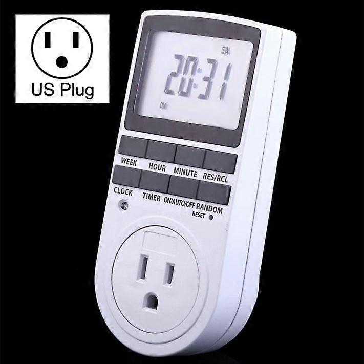 【New】 AC 120V Smart Home Plug-in Programmable LCD Display Clock Summer Time Function 12/24 Hours Changeable Timer Switch Socket, US Plug