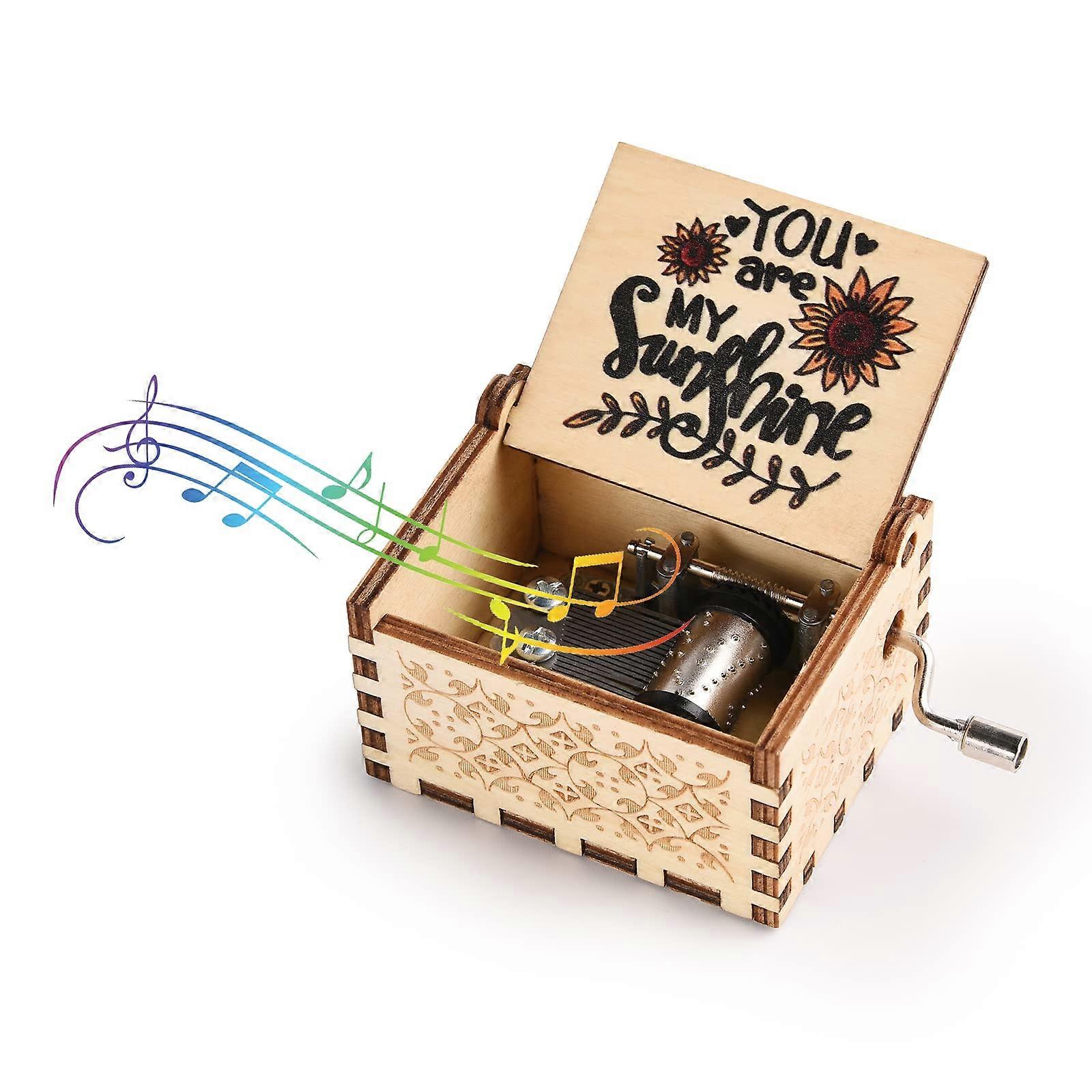 You are My Sunshine Music Box,Hand Crank Wooden Vintage Laser Engraved Small Personalized Musical Box Gift for Birthday/Christmas/Valentines Day/Anniv