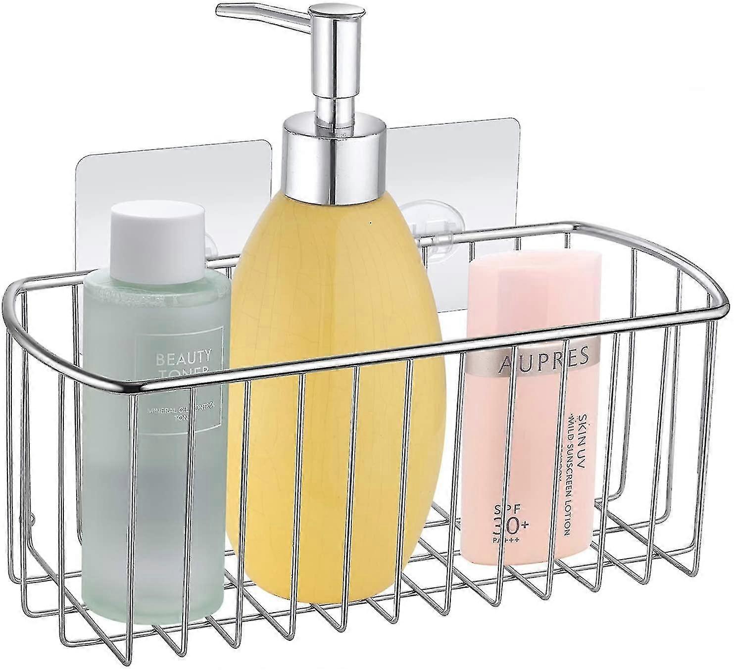 No-drilling Shower Caddy Sus304 Stainless Steel Clear Self Adhesive Rectangular Shower Basket Shower Shelf For Bathroom