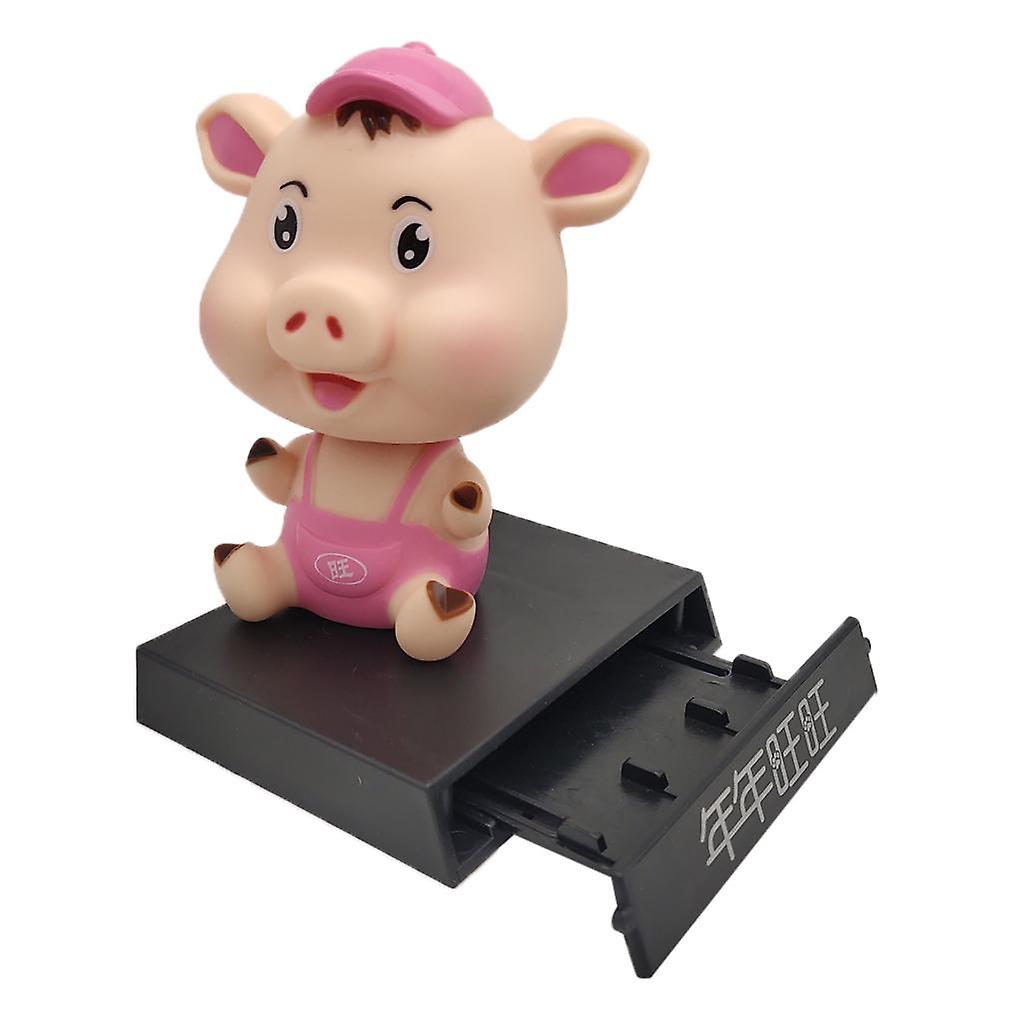 Nodding Lucky Pig Figure Doll with Phone Holder Car Auto Interior Decor Pink