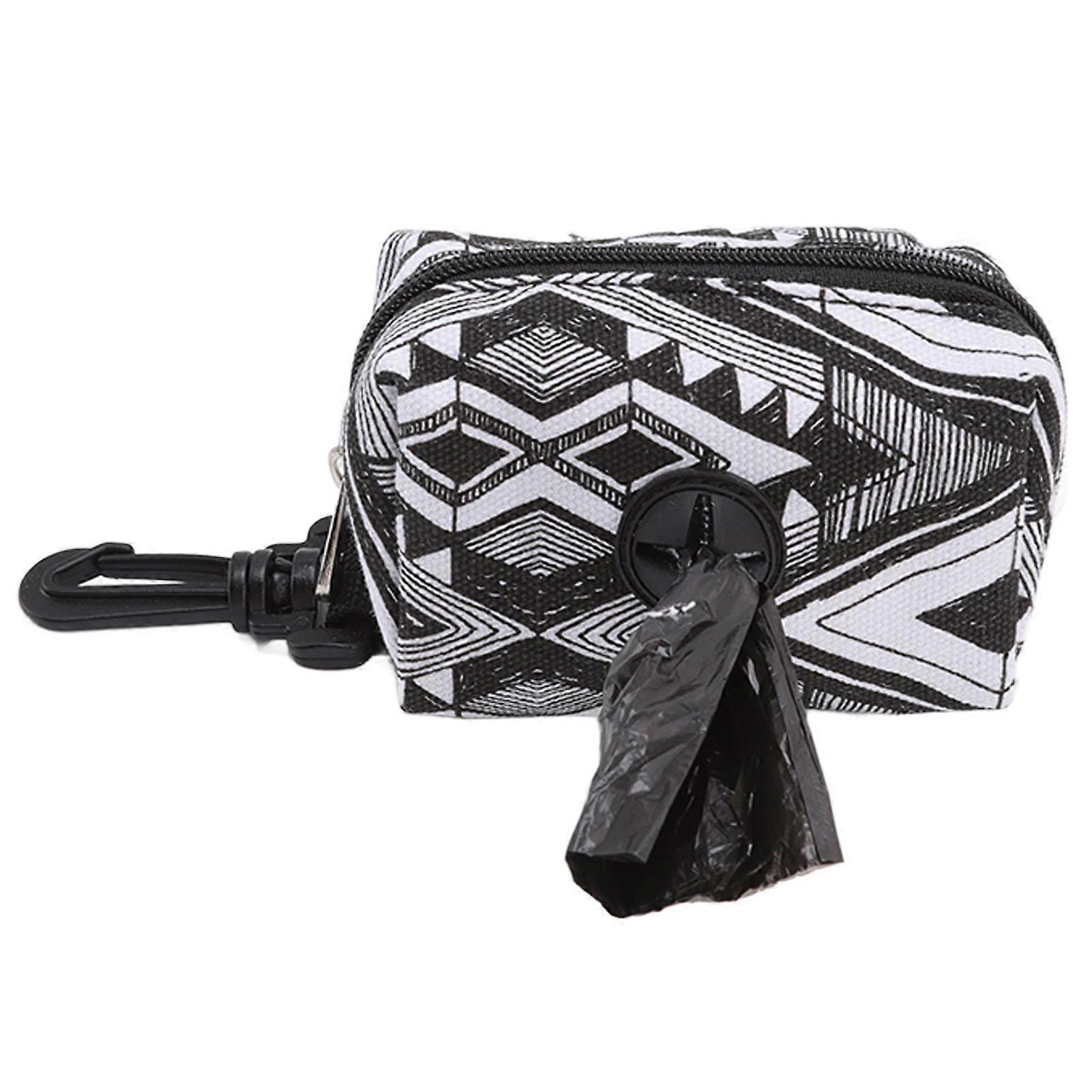 Poop Bag Dispenser Portable Wear Resistance Dog Poop Bag Holder with Buckle for Pets Dogs Puppies Black White