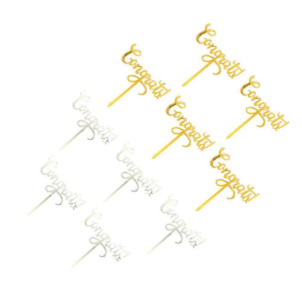 Congrats Grad Cake Topper Acrylic Graduation Decoration Creative Gold and Silver Color DIY Cake Insert Letter Design for Graduation Party 10Pcs