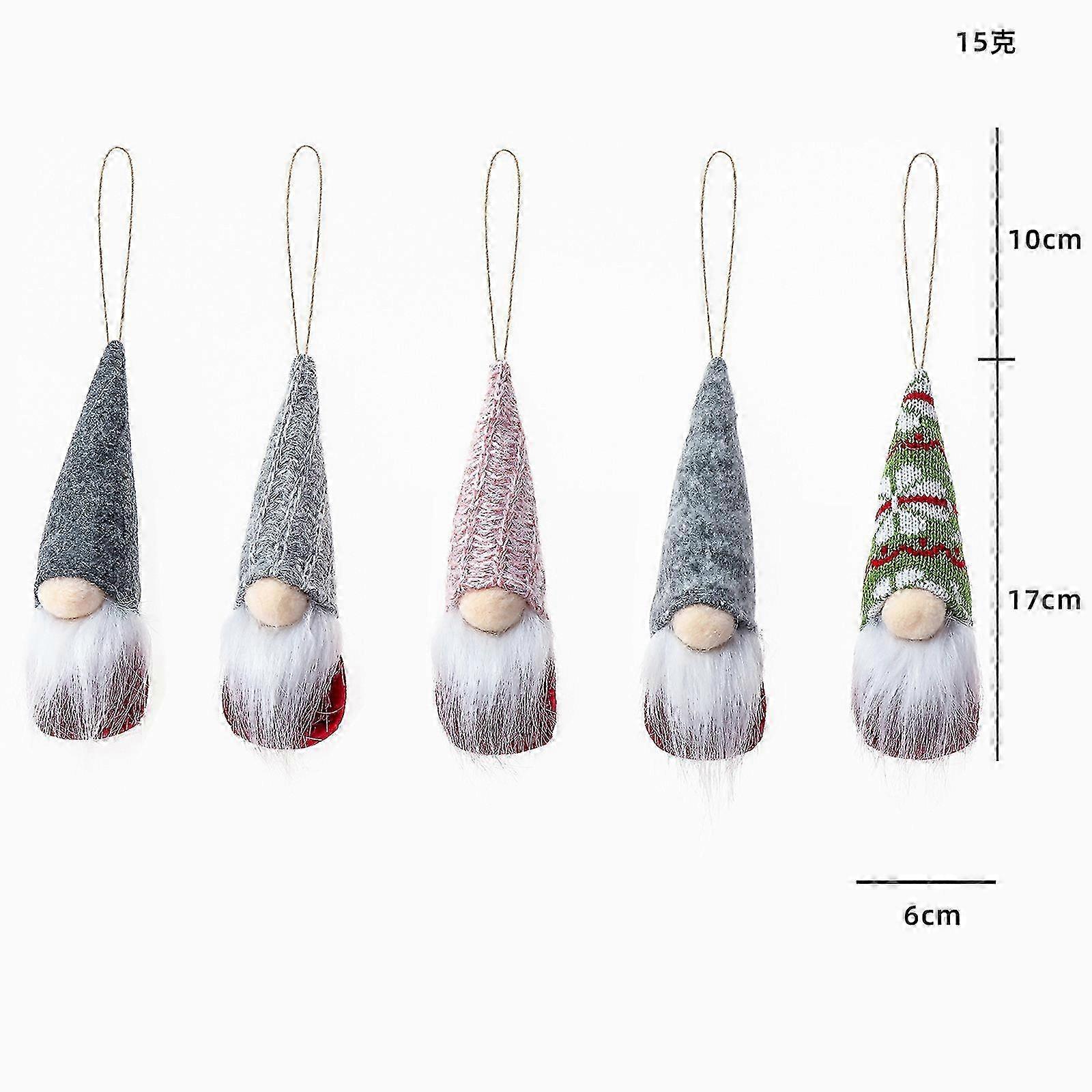 Toy Plush Gnome Doll - Faceless Old Man in Christmas Wool Pendant - Set of 5