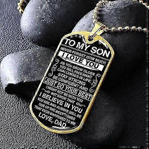 Military Dog Tag Necklace for Son from Dad, Engraved Never Forget I Love You Gift with Ball Chain