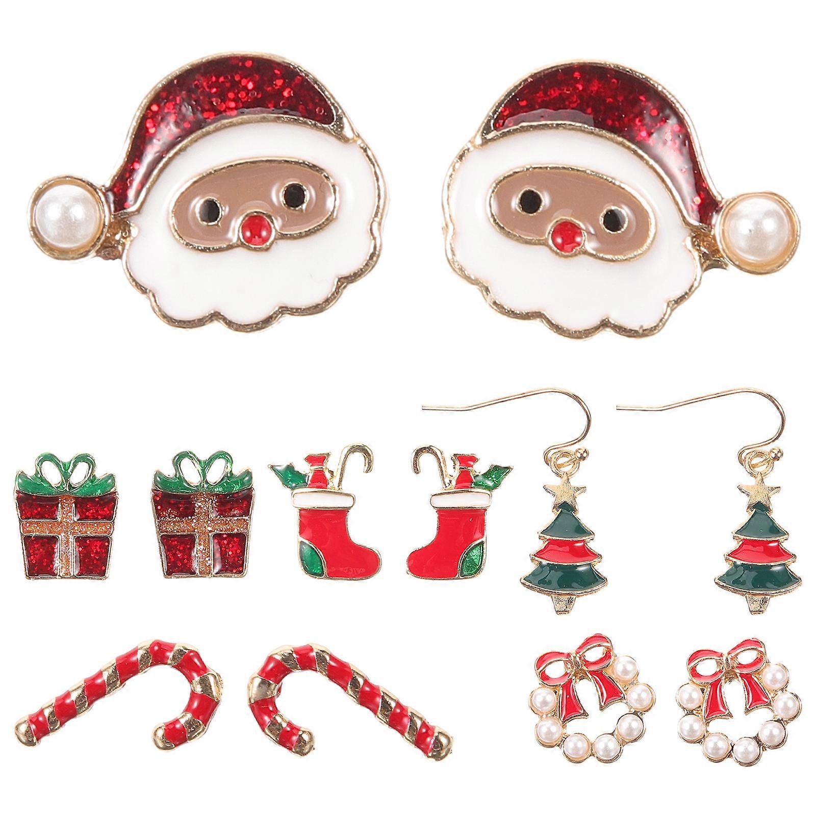 Festive Earrings Set Women Girls Christmas Ear Jewelry Assorted Color Round Fashionable 6 Pairs