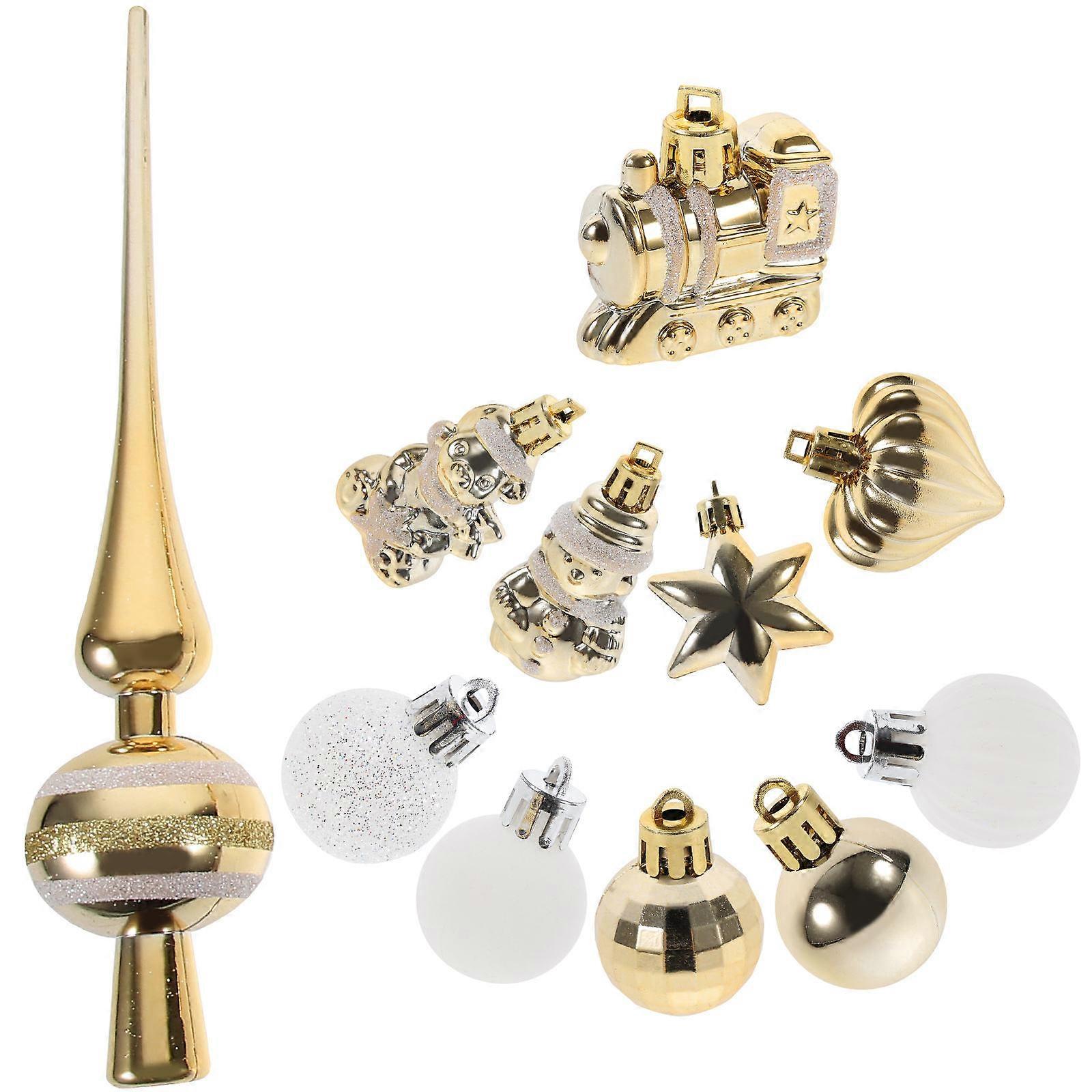 Festive Christmas Tree Pendants Lovely Cartoon Decorations Hanging Ornament 34-Pcs in Golden Plastic