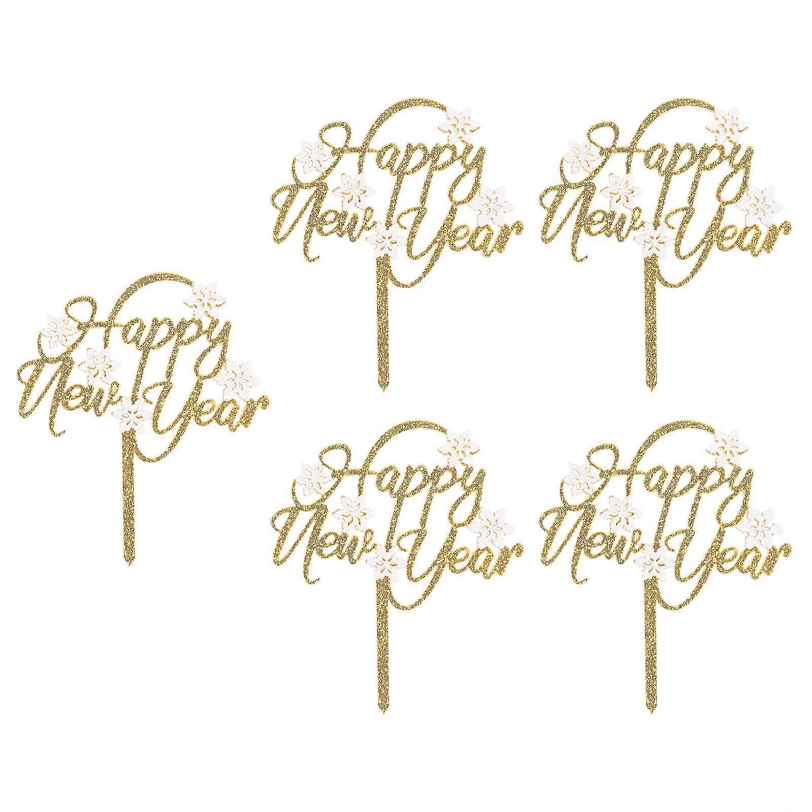Festive Theme New Year Cake Cupcake Picks Golden Cake Insert Cards For Cakes Party Desserts 12.5x10x0.3cm 5Pcs