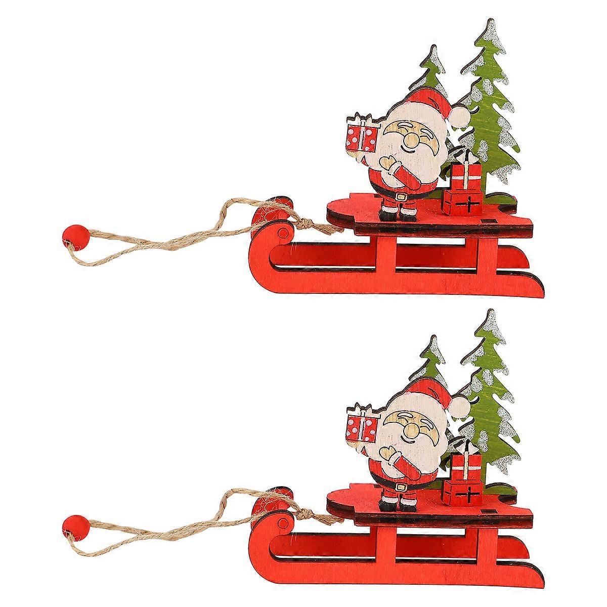 Colorful Wooden Christmas Sleigh Decorations with Santa Claus DIY Table Ornaments for Festive Home Display – Durable Painted Crafts for Mantel and