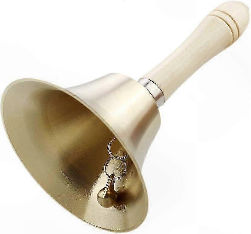 Festive Solid Brass Hand Bell with Wooden Handle, 11cm