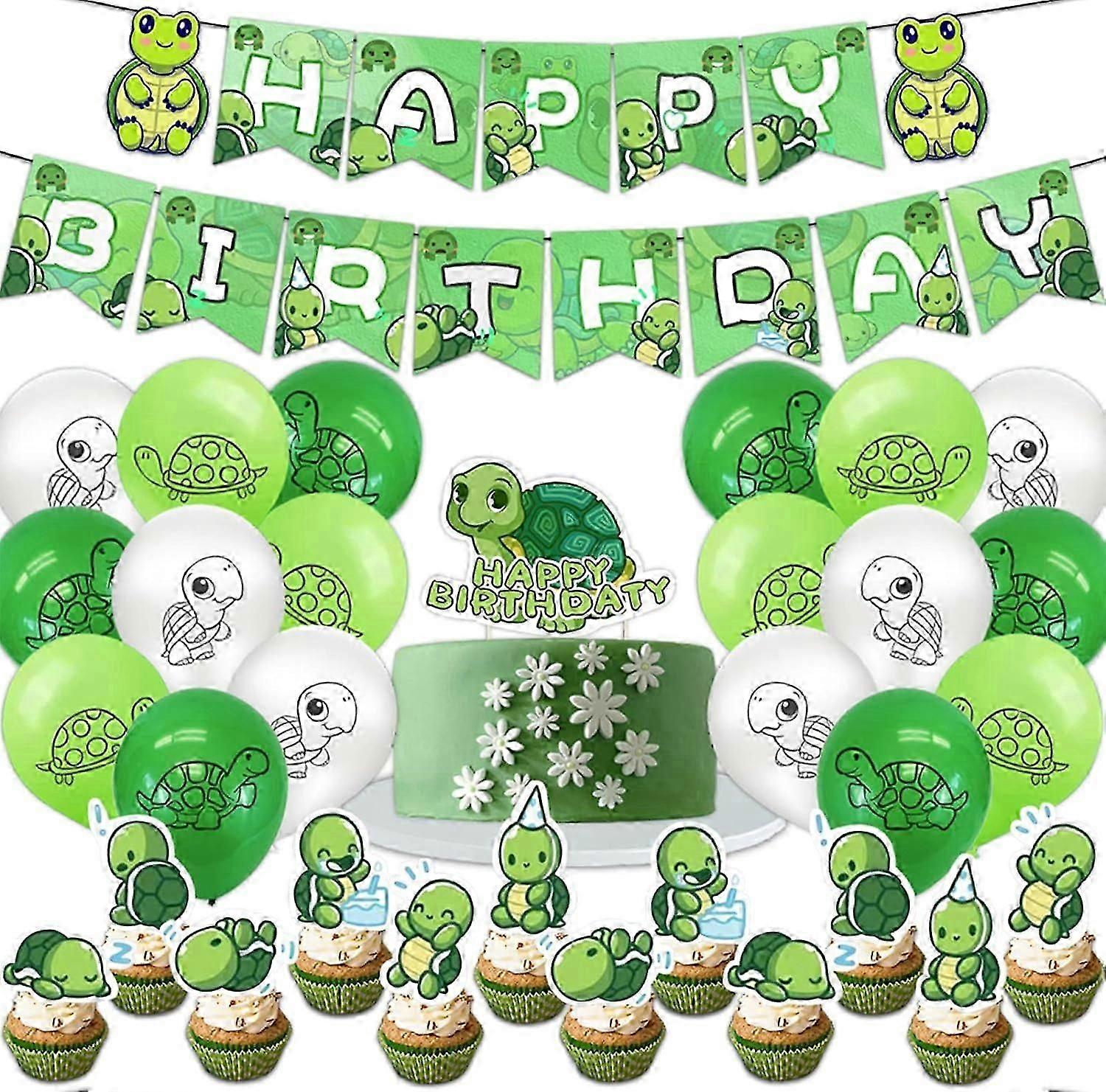 Turtle Baby Party Supplies Set with Happy Birthday Banner, Turtle Balloons, Turtle Cake Topper, Turtle Cupcake Toppers, Ocean Sea Life Theme Party for