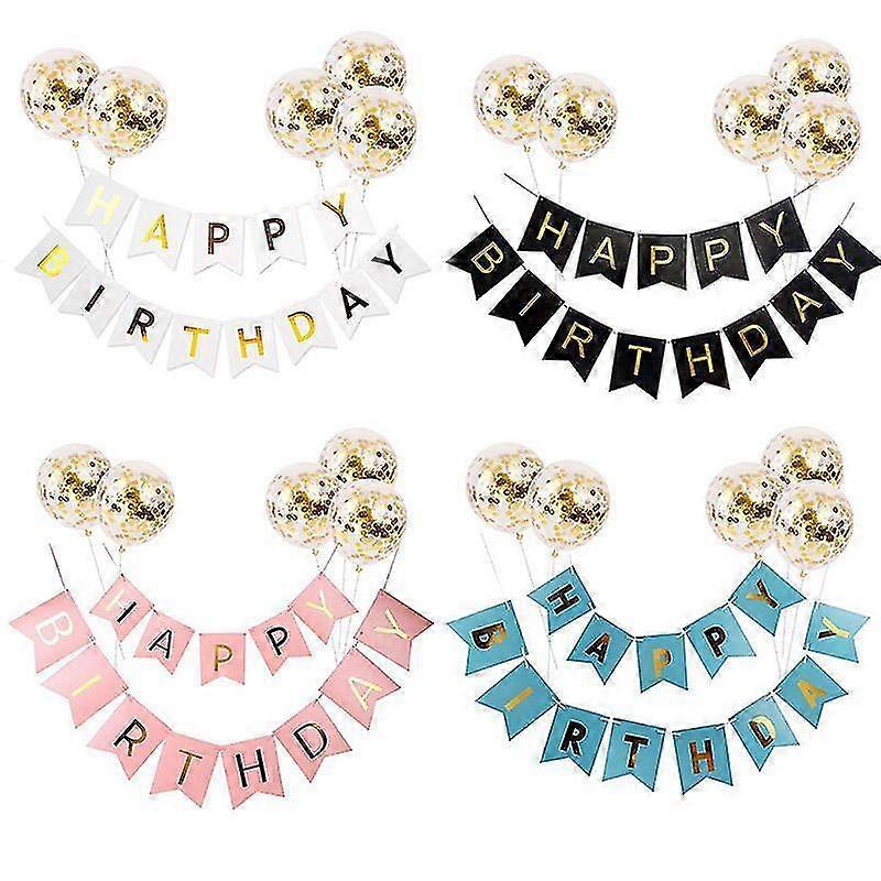 4 Set Of Happy Birthday Banner, Black Gold Party Decorations , 12 Inch Happy Birthday Balloons