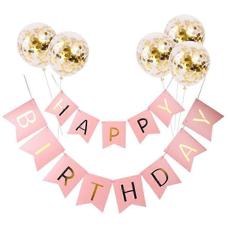 Happy Birthday Banner Birthday Bunting With 5 Gold Confetti Latex Balloons Perfect For Birthday Party
