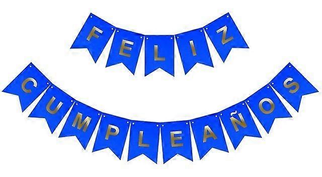 Description Happy Birthday Banner - Party Decoration. Package with 15 letters in cardboard. The ribbon to place the letters is included. Material: Cardboard. Each letter measures 12 cm wide by 17 cm long. Colours: royal blue. Package include:1 Set Spanish laser birthday pull flag