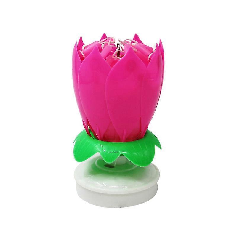 Happy Birthday Party Candle Cake Light Musical Lotus Flower Rotating Lamp Decor(1pcs, pink)
