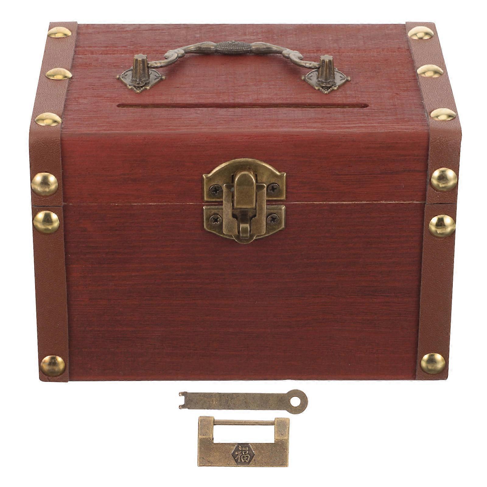 Antique Style Wooden Storage Box with Lock for Money, Jewelry & Hair Accessories – Compact Portable Design for Home Organization