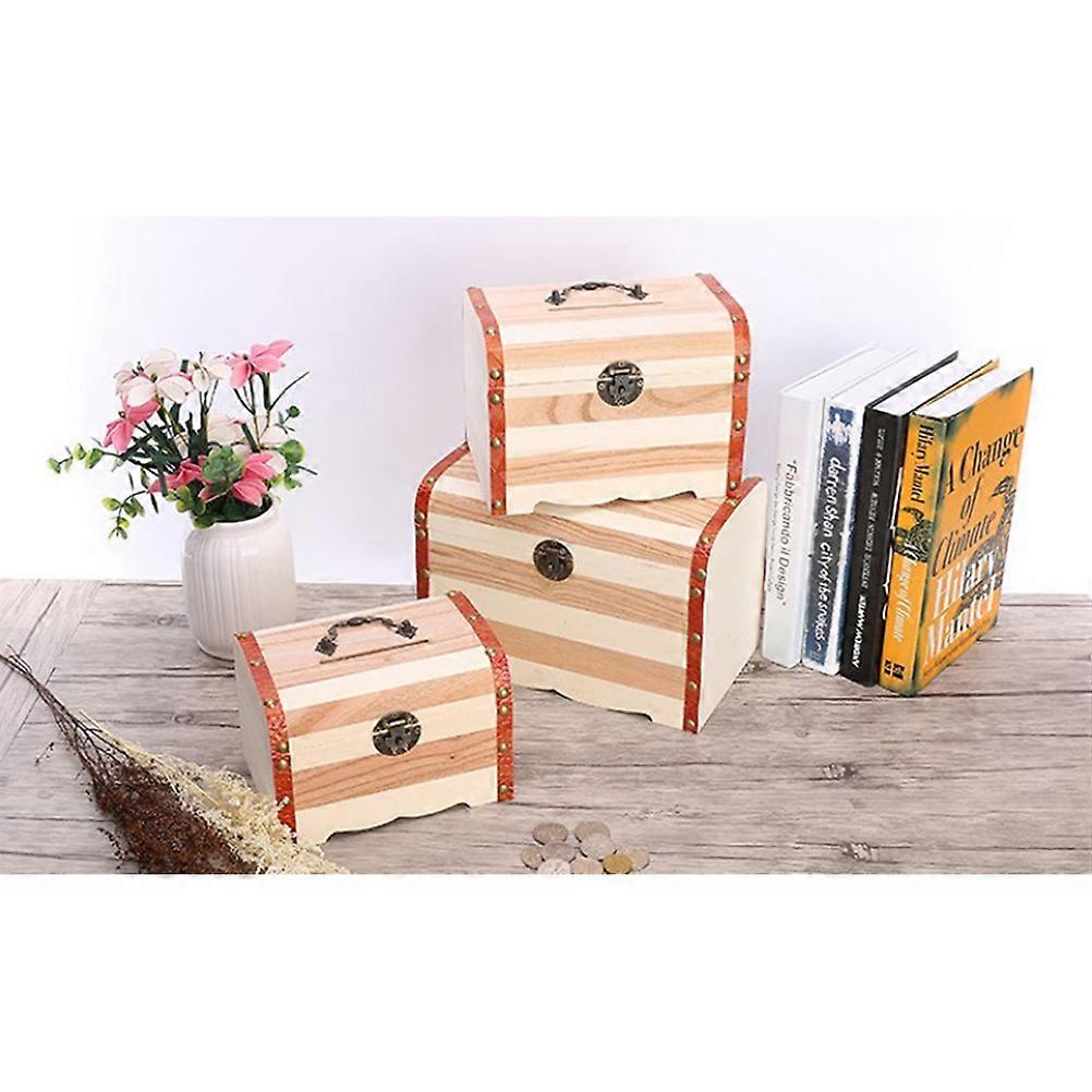 Money Saving Jar Vintage Wood Coin Saving Bank Box Cash and Coins Storage for Children Home Owners 1Set