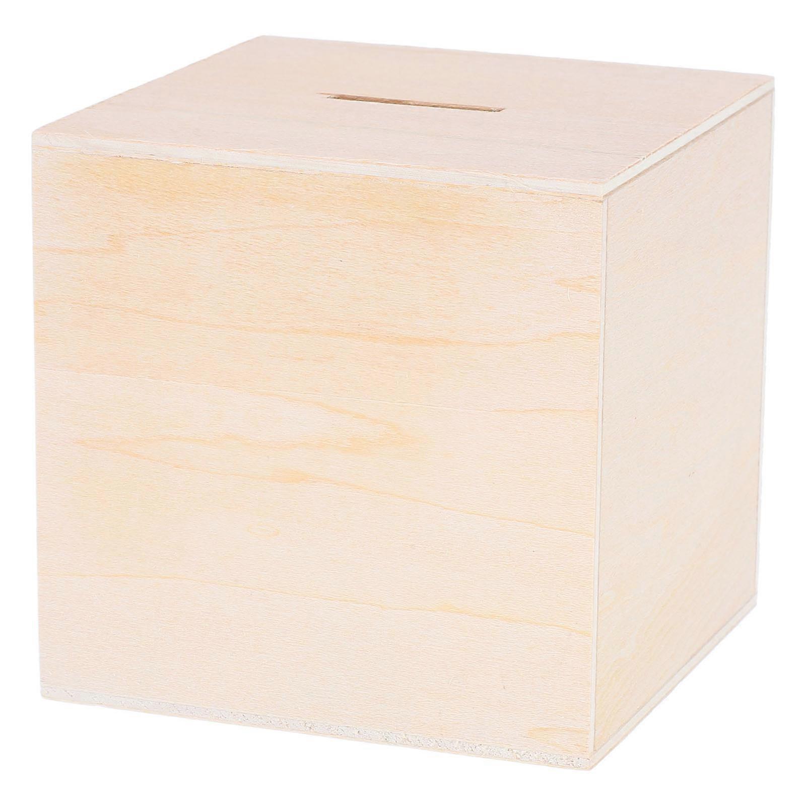 Money Savings Box Natural Wood Finish Compact Design For Kids Diy Craft Project And Tabletop Decoration 1Pack