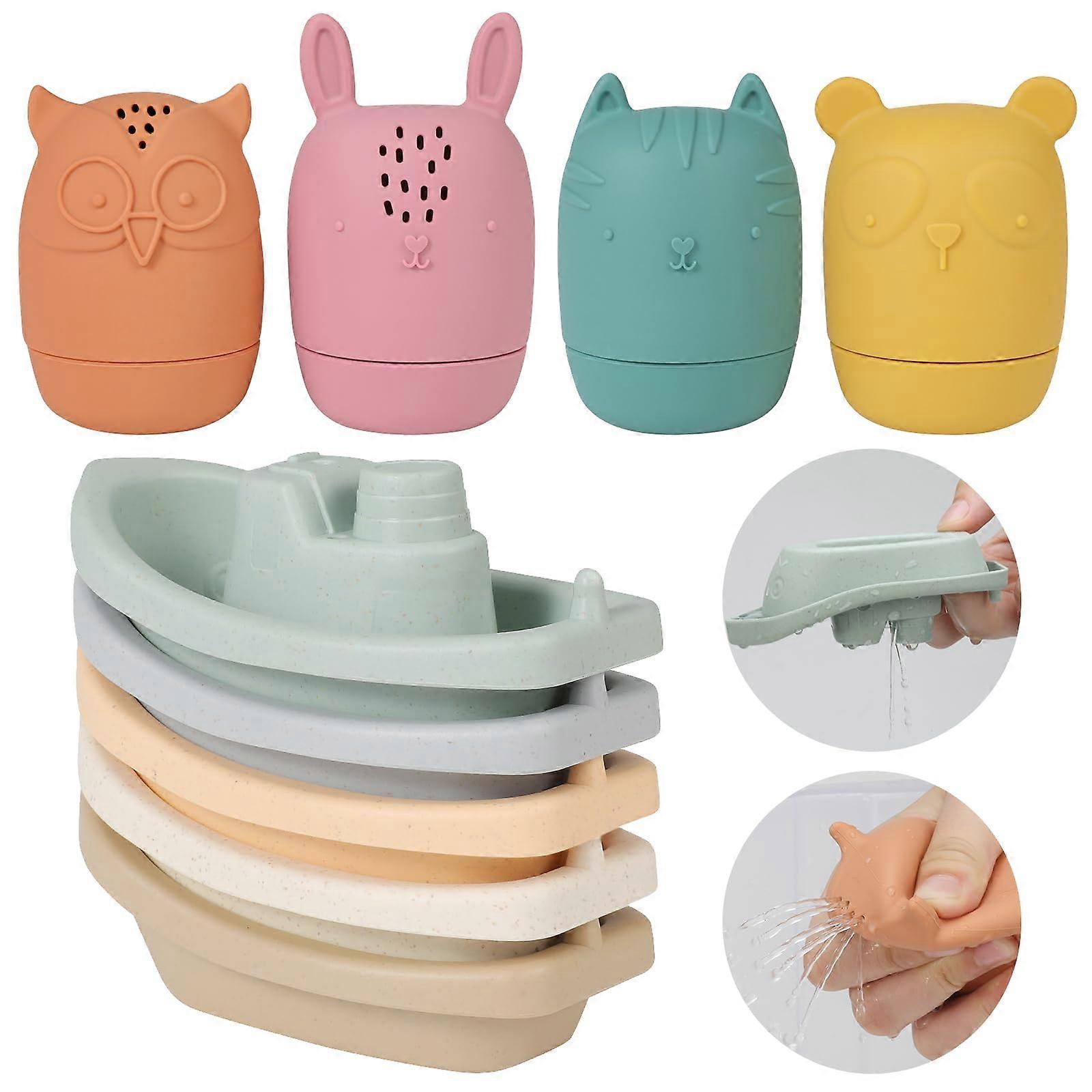 Bath Toys Floating Boats, 9pcs Mold-Free Silicone Bath Toys for Infants 6-18 Months, Water Table & Shower Toys for Toddlers 1-3