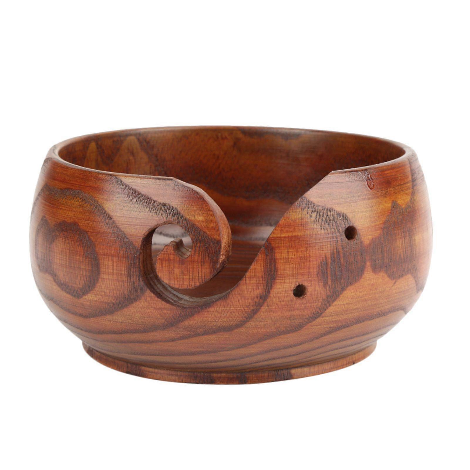Natural Handmade Crafted Wooden Yarn Bowl for Knitting Crochet Home Decor (Small Diameter)