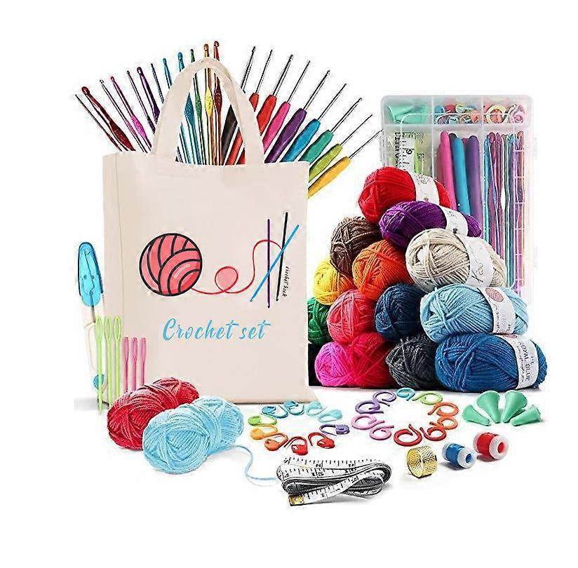 73 Piece Crochet Kit With Crochet Yarn Set. Premium Bundle Includes Yarn Balls, Needles, Accessory Kit, Canvas Tote Bag And More