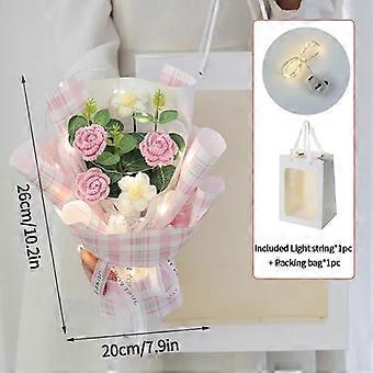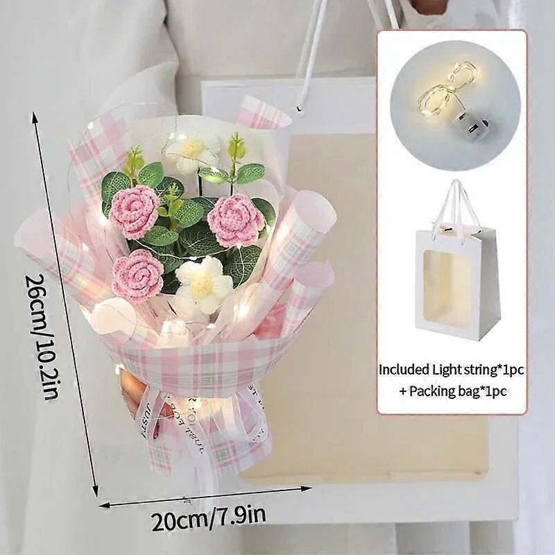 Crochet Flower Bouquet Knitted Flower Artificial Crochet Woven Flowers Bouquet with Led Light New Year Valentine's Day Gift