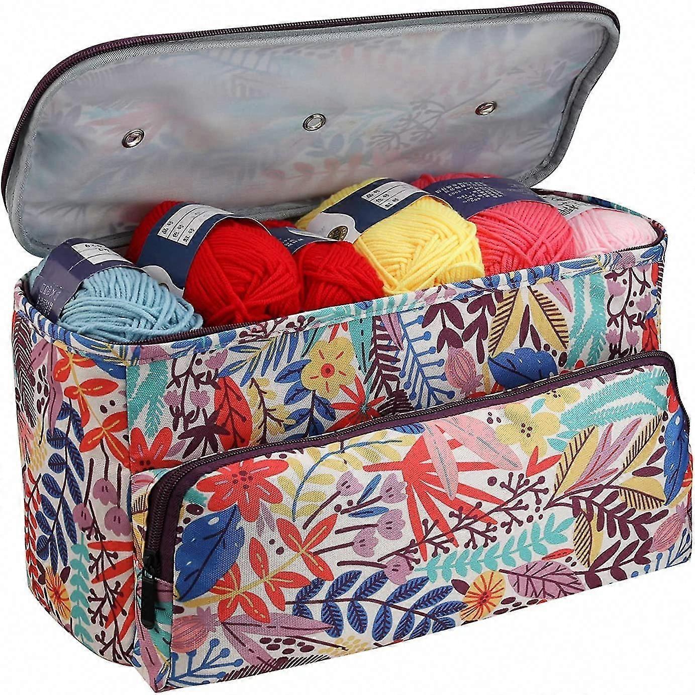 Knitting Bag for Crochet & Yarn Storage, Tote with Compartments & Pockets, 36cm x 19cm Project Bag