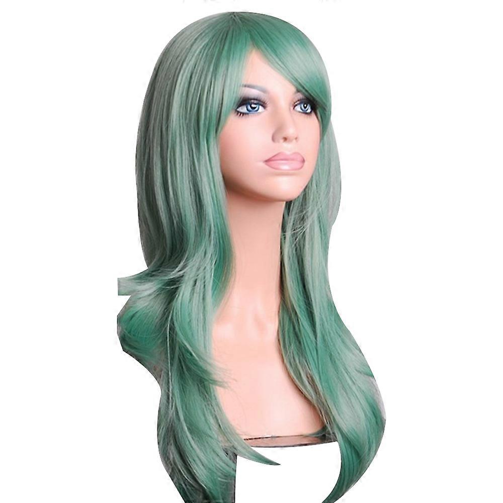 Wig Short Curly Wig with Bangs Green Wig Synthetic Wigs Women Girls Wig with Wig Cap