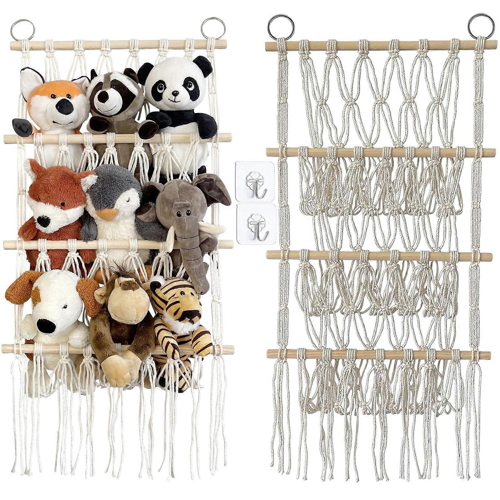 Cuddly Toy Hammock 3 Tier Storage Net for Stuffed Animals Wall Hanging with 2 Hooks for Children's Bedroom Living Room