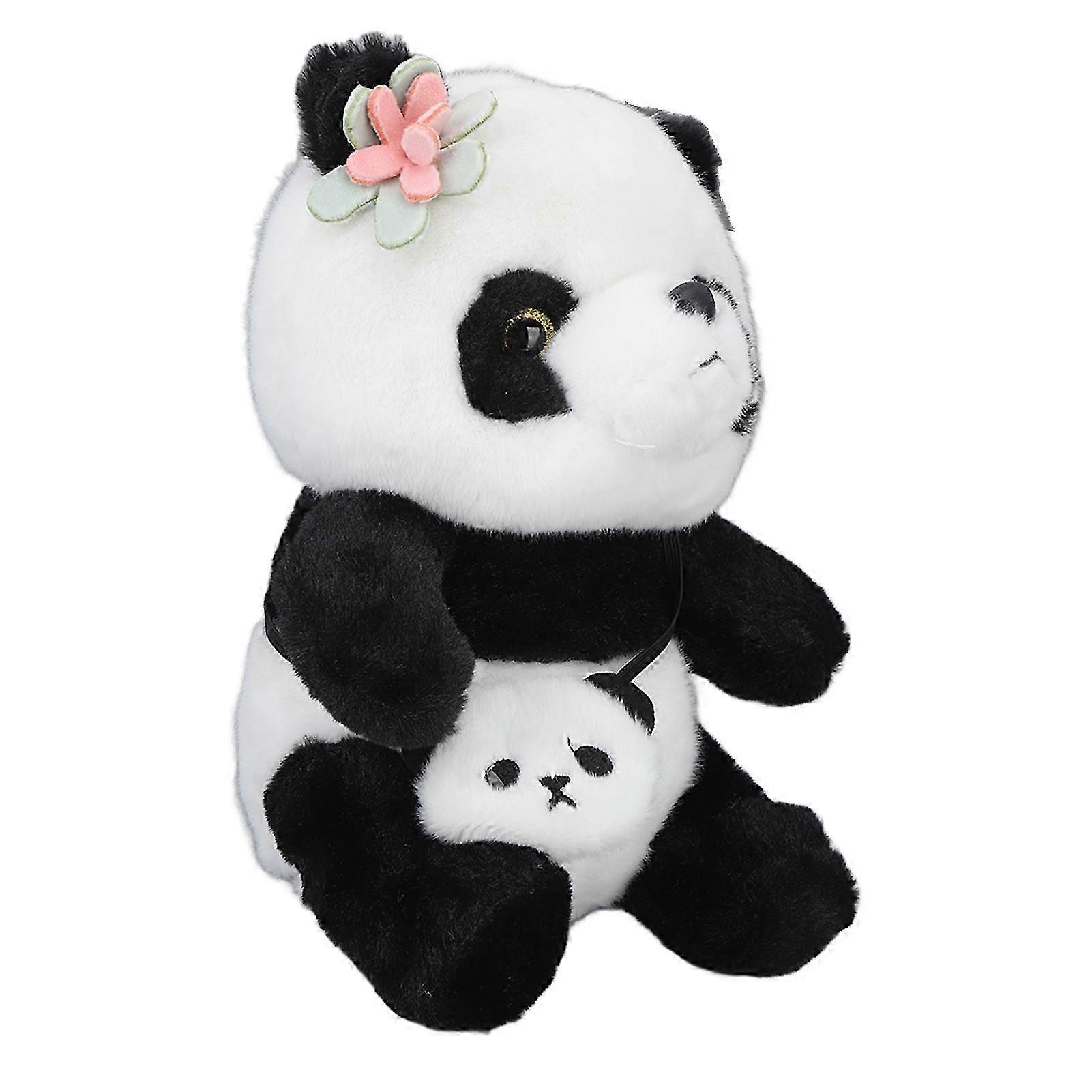 Cute Plush Panda Pillow Soft Comfortable Washable Simulation Stuffed Toy with Flower Decoration 9.8in