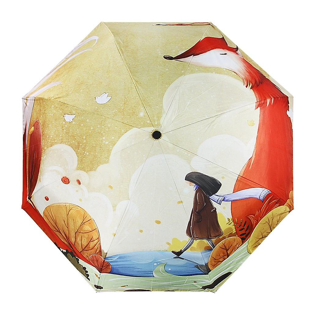 Cute animal art print. Compact 8 Rib Umbrella, UV Protection Sun Umbrella for Women (Girl's World)