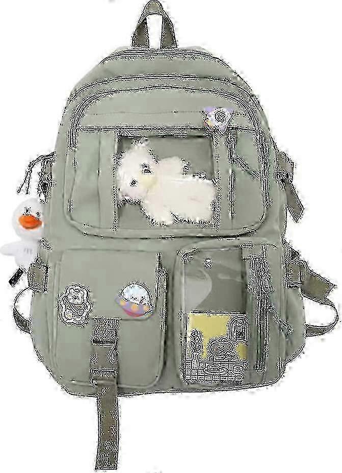 Backpack With Cute Duck Bear Plush Accessories Japanese School Bag For Teen Girls Back To School Supplies (green)