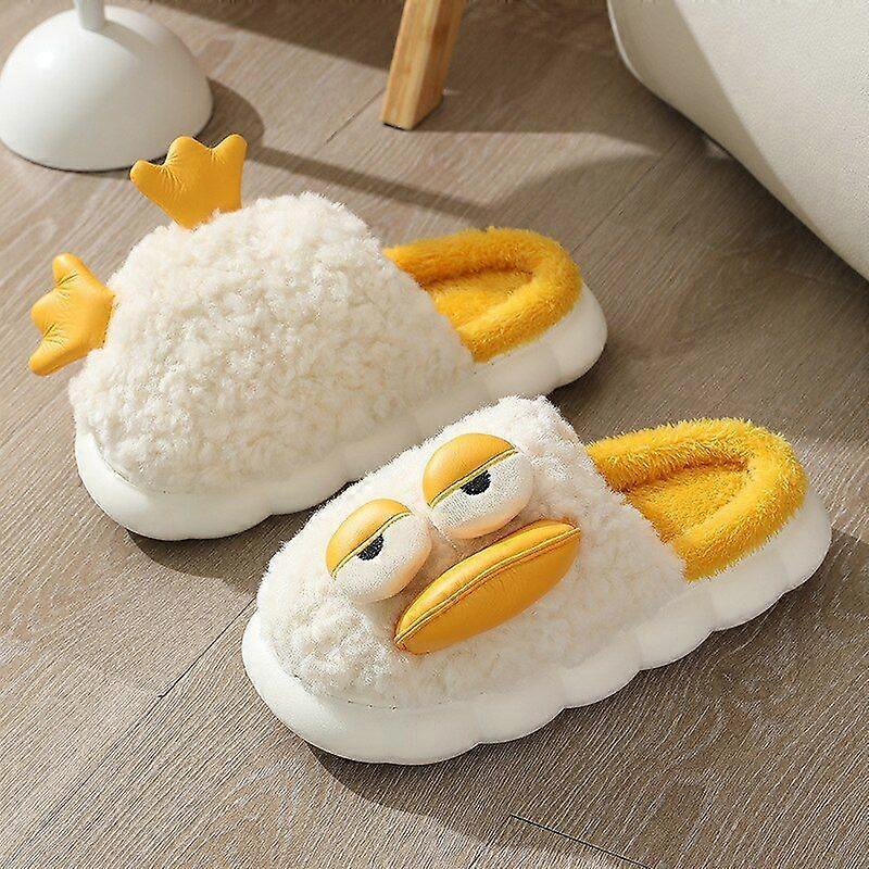 Cute Duck Slippers Women Shoes Winter Slippers Indoor House Shoes Warm Plush Slipper Couples Home Platform Footwear White