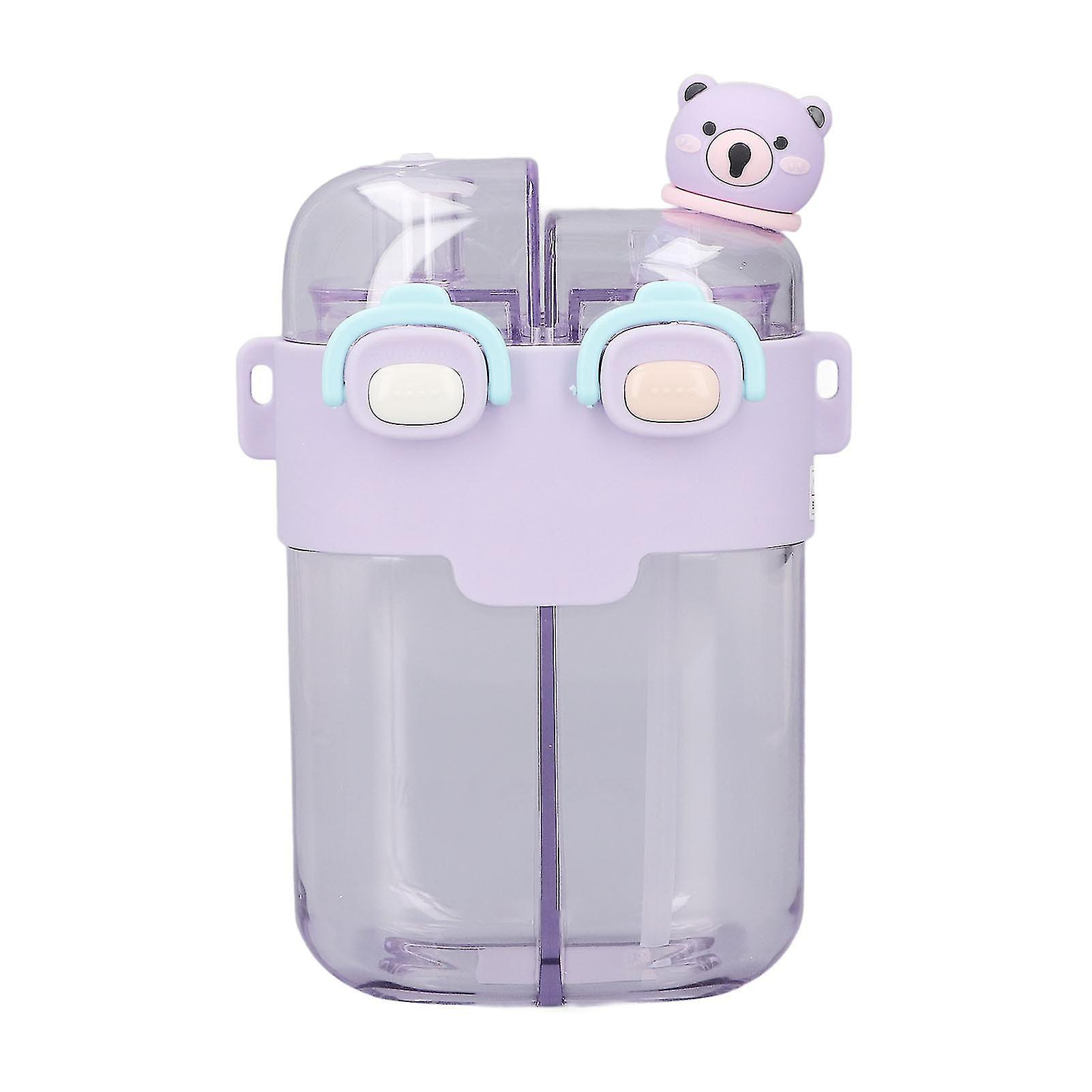 Cute Water Bottle 780ML Dual Use Leakage Proof Kawaii Drink Bottle with Straw Adjustable Strap Sticker Purple