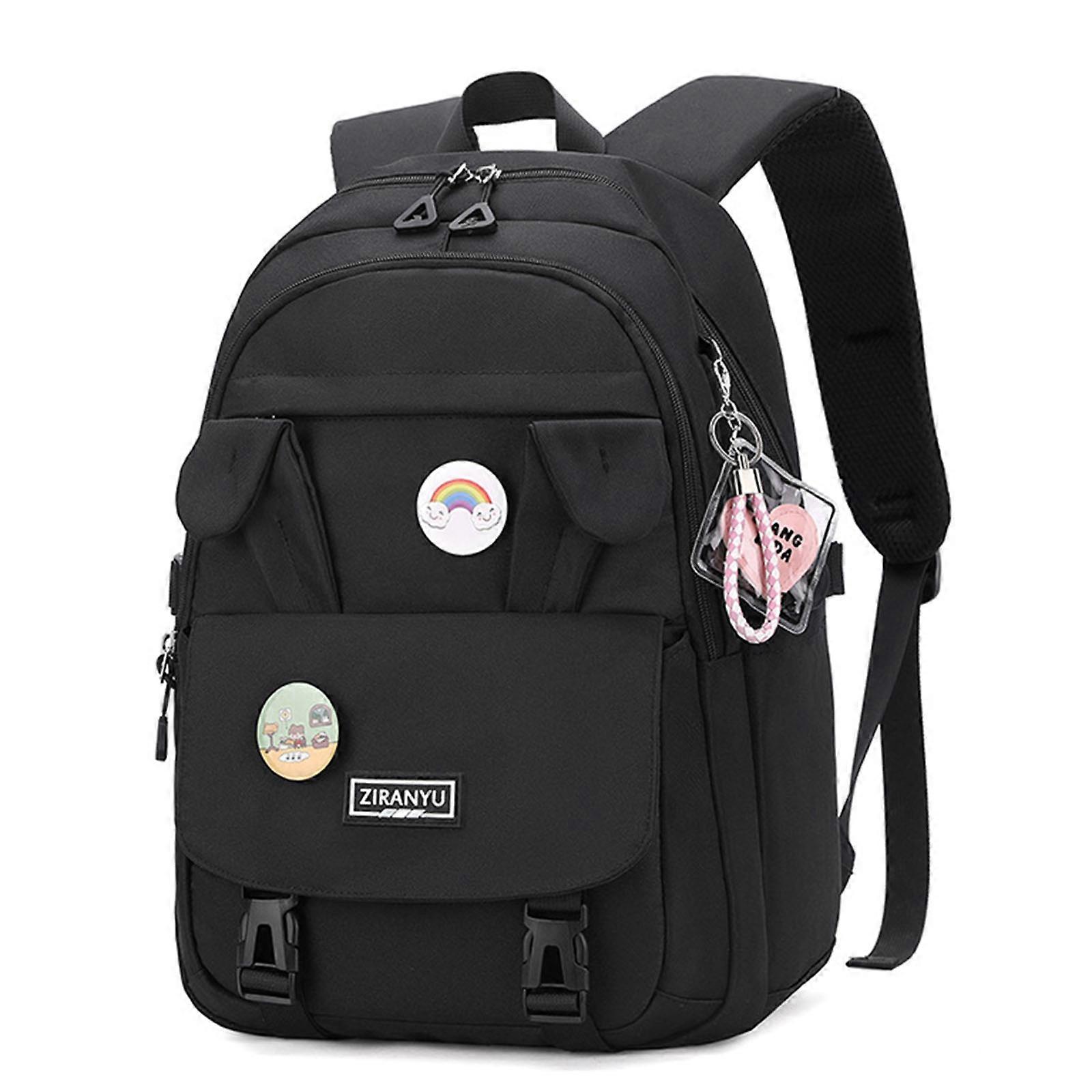 Cute Rabbit Ears School Backpack Large Capacity Casual Rucksack Travel Bag for Girl Boy Youth Nylon Bookbag Daypack Black