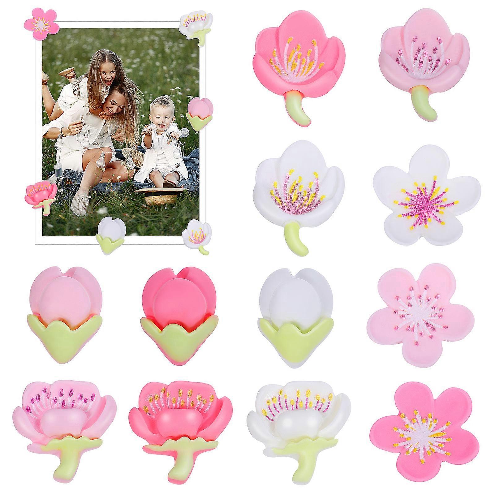 Cute Kawaii Fridge Magnets Refrigerator Decorations Flower Shape Assorted Color 12Pcs