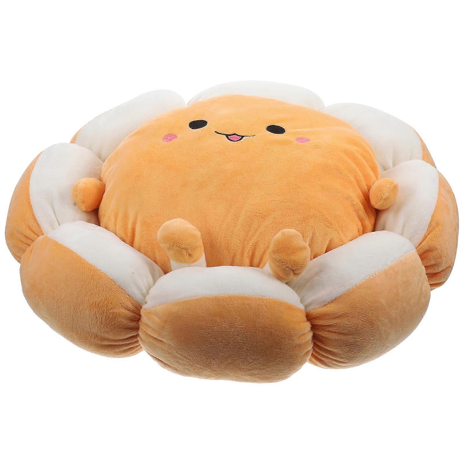 Cute Cushion Plush Cartoon Home Office Chair Yolk Flower Shaped Seat Cushion For Living Room Bedroom Orange 46X46X5CM 1Set