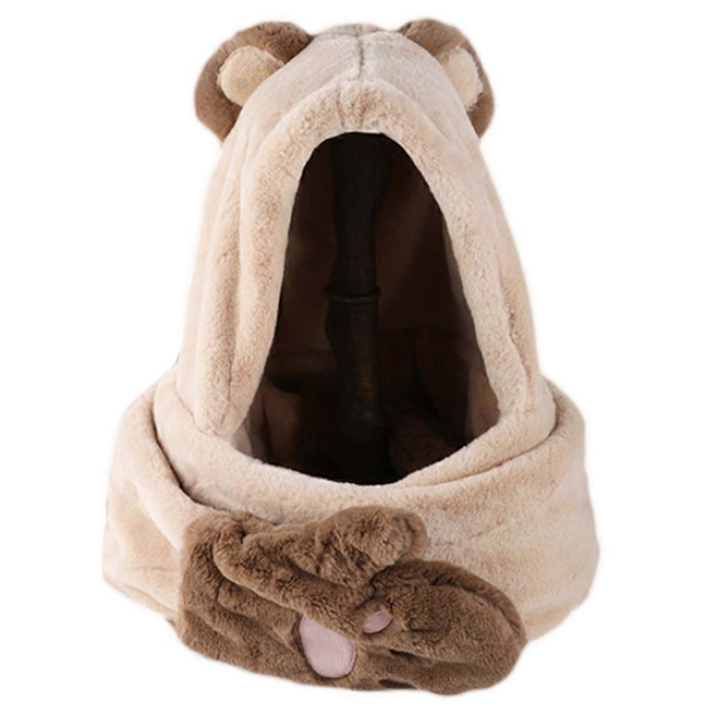 Cute Bear Plush Warm Hooded Scarf Winter Kids Hooded 3 In 1 Scarves for Winter Hood Scarf Hat Glove Ladies Khaki