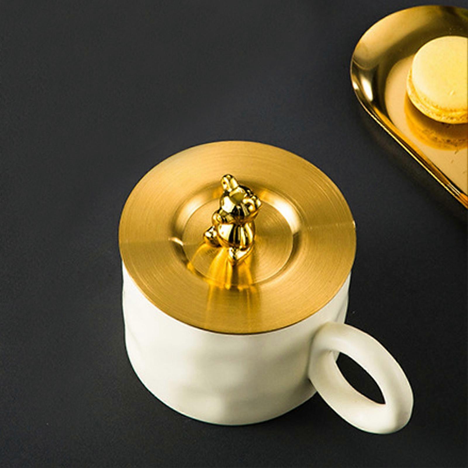 Cute Bear Cup Cover Stainless Steel Dustproof Rounded Edges Glossy Surface Artistic Cup Lid for Mug Glass Cup Gold