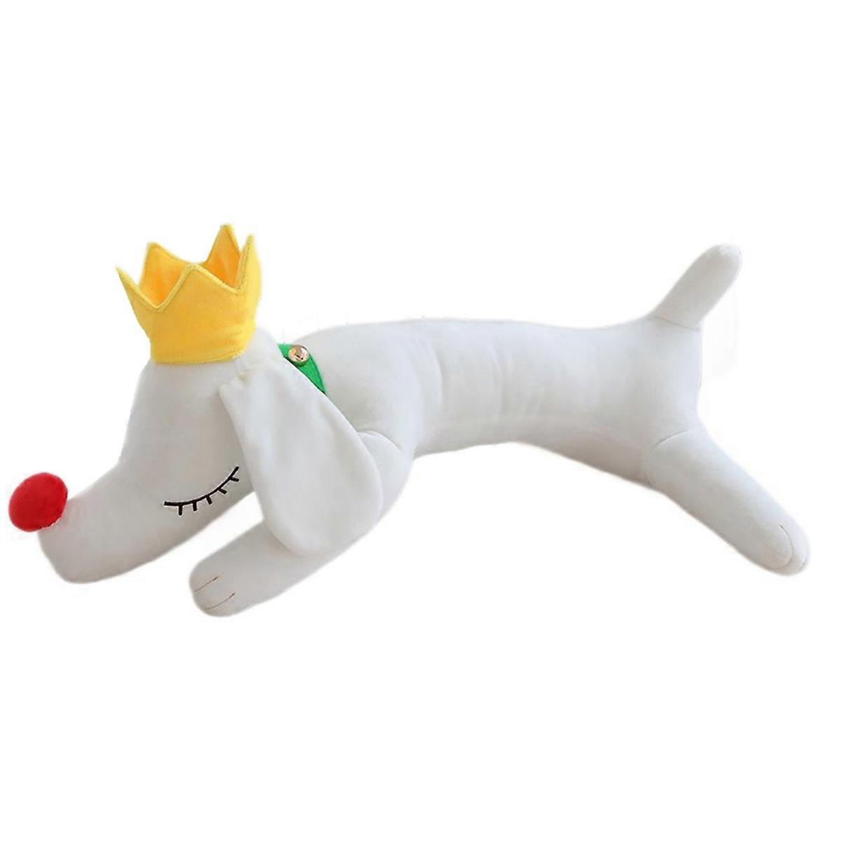 Cute Crown Dog Pillow Plush Toy Doll Lying Dog Puppet Girl Bed, Sleep on the Bed, Soothing Puppet Doll