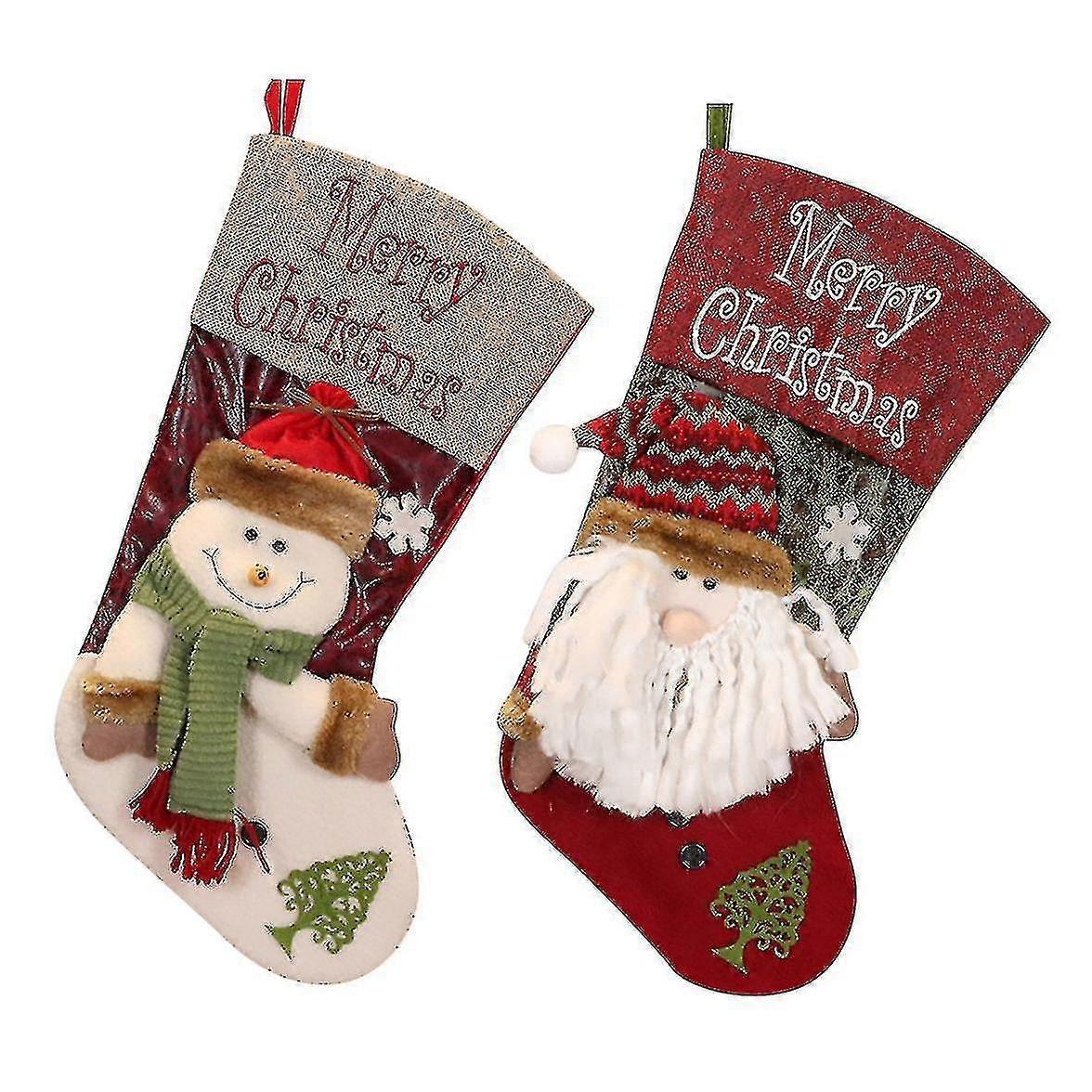 describe:1. Christmas decorations: This Christmas stocking has a large top opening and spacious interior space, perfectly compatible with various candies, small gifts and stocking fillers, compatible with a more exciting Christmas morning.2. Compatible for any occasion: Each sock includes easy-hanging loops so you can safely and easily hang it on Christmas trees, walls, doors, and fireplaces. Also makes a cute gift compatible with family or friends at a Christmas party.3. New Year, Christmas stockings, candy gift bags, Christmas tree hanging ornaments for decoration. Suitable for decorating Christmas trees at home, restaurants, hotels, clubs, bars, etc. during Christmas4. Traditional and classic Christmas elements, beautiful holiday items compatible with matching Christmas trees, and a great way to give gifts this holiday season, fun that is compatible with all the family.5. These are gorgeous, well made, high quality, they are thick, gorgeous colors and materials, all details are exquisite, perfectly compatible with filling a range of gifts, and you will have no worries using these compatible gifts for years to come.Specification:Christmas stocking application scenarios: Christmas tree decoration, home decoration, fireplace decorationColor: as shown in the pictureMaterial: clothDimensions: 50 x 28cmPackage Contents:2*Christmas stockingsOnly the above package contents are included, other products are not included.NOTE: Lighting photography and different displays may cause the color of the item in the picture to be slightly different from the real item. The measurement allowance is +/- 1-3cm.