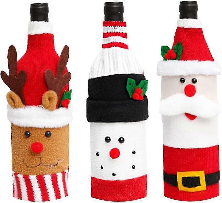 Set of 3 Christmas Wine Bottle Holders with Cute Santa Claus, Reindeer & Snowman Design - Perfect for Holiday Party Decorations