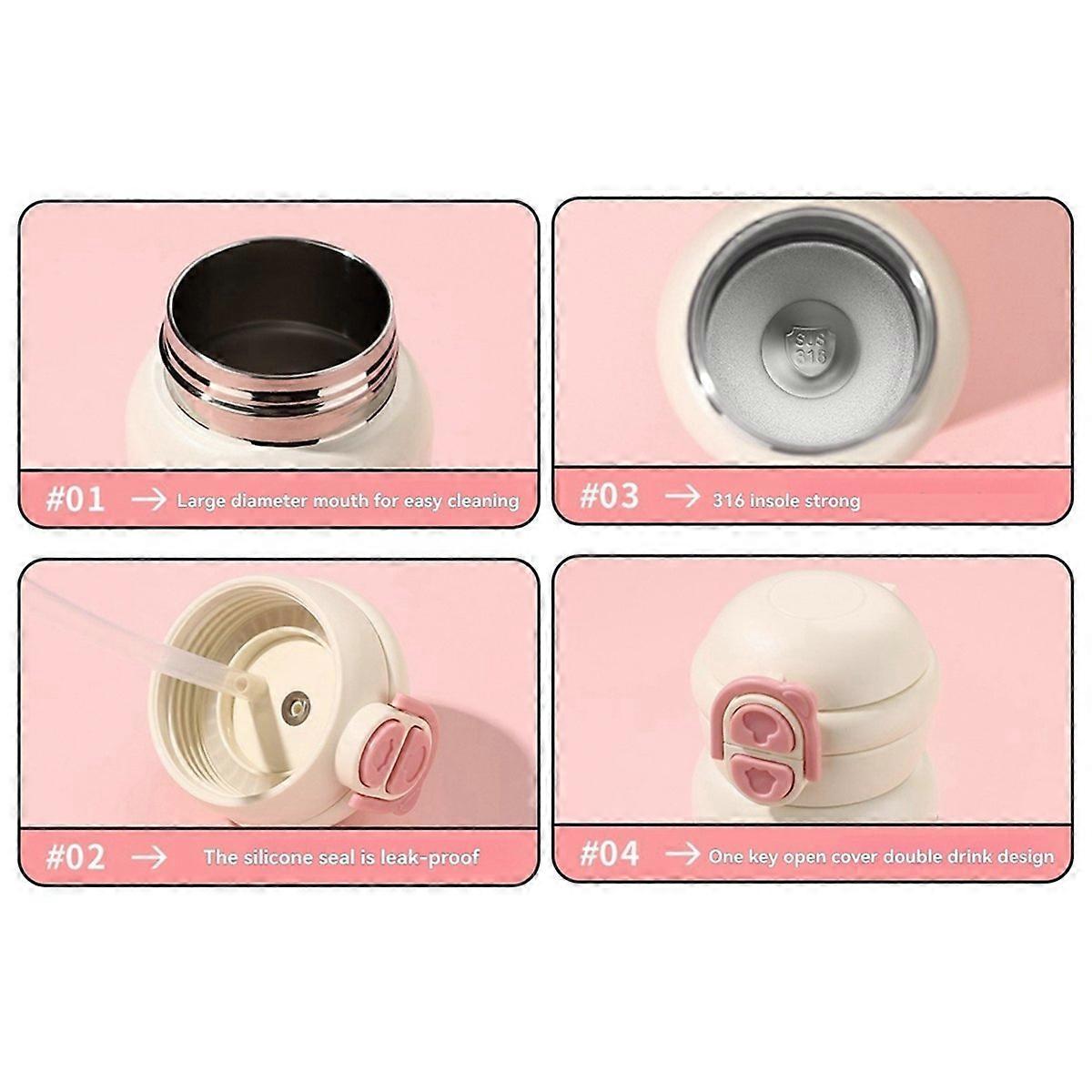 Cute Stainless Steel Water Bottle with Straw Black